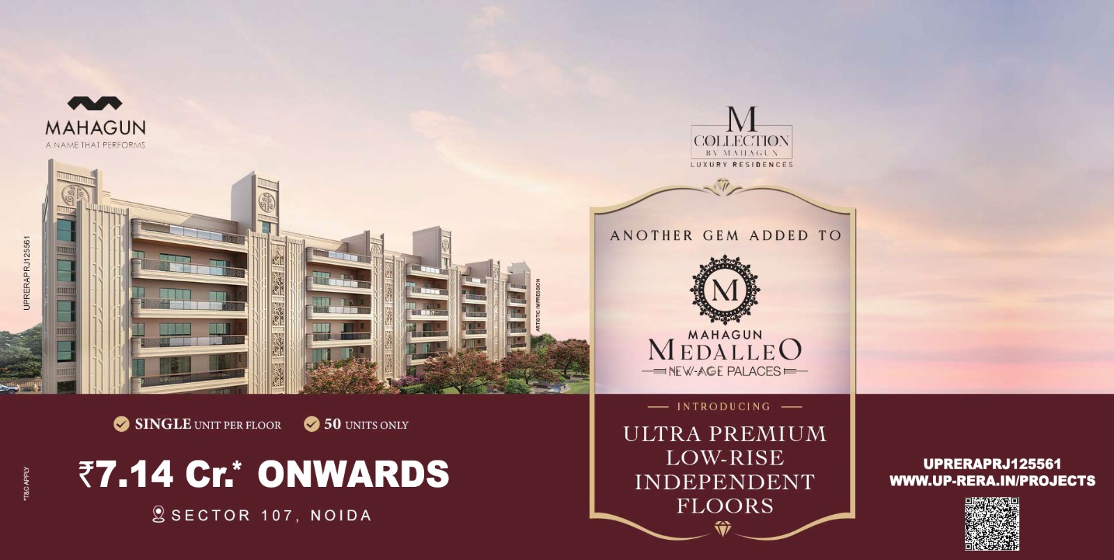 Another gem was added to the new-age palaces for the new-age royals (Medalleo). The premium independent floors here offer a cutting-edge way of life, encompassed by a rich green landscape. Enjoy the good life with elite security and amenities in these exclusive 50 units of luxury low-rise apartments in Noida for the privileged few. Achieve the goal of genuinely savoring the energetic extravagances of life while building a heritage for your friends and family. Click Here